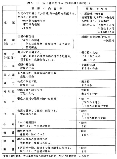 表5-10 吉田藩の村役人