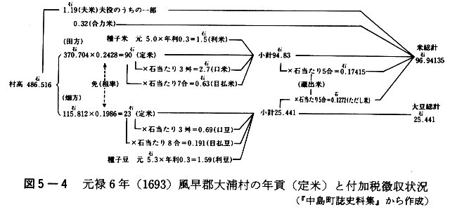 図5-4 元禄6年(1693)風早郡大浦村の年貢(定米)と付加税徴収状況