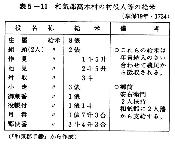 表5-11 和気郡高木村の村役人等の給米
