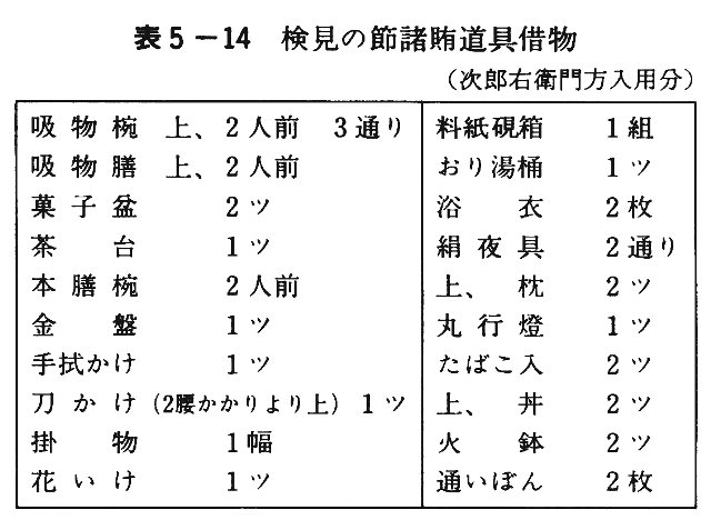 表5-14 検見の節諸賄道具借物