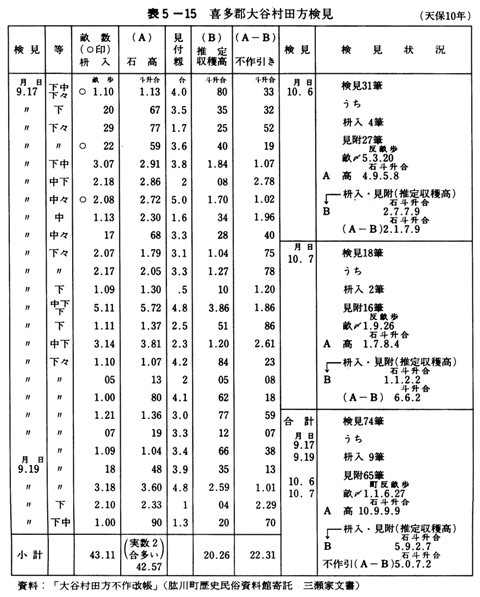 表5-15 喜多郡大谷村田方検見
