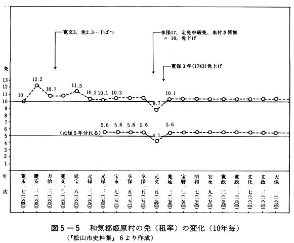 図5-5 和気郡姫原村の免(租率)の変化(10年毎)