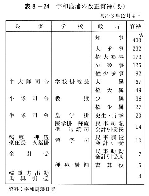 表8-24 宇和島藩の改正官禄(要)