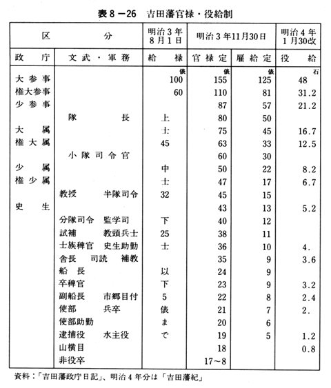 表8-26 吉田藩官禄・役給制