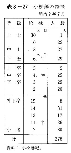 表8-27 小松藩の給禄