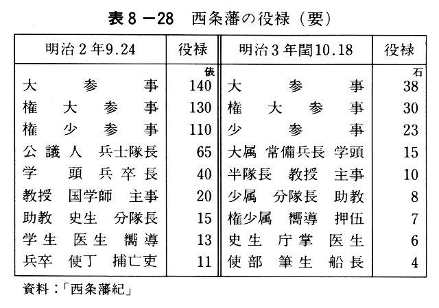 表8-28 西条藩の役禄(要)