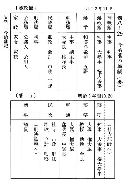 表八-29 今治藩の職制(要)