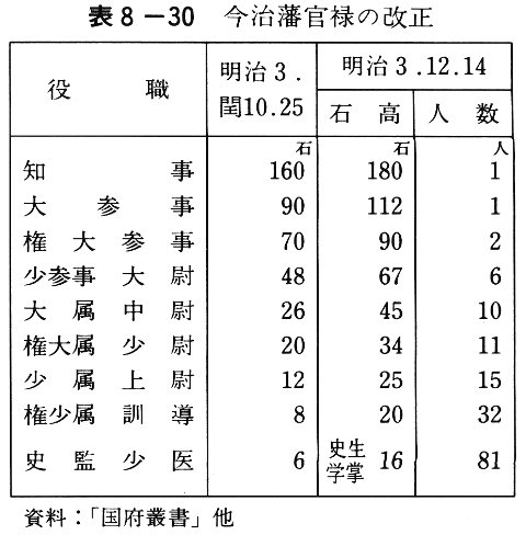 表8-30 今治藩官禄の改正