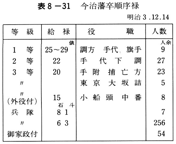 表8-31 今治藩卒順序禄
