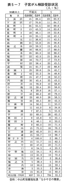 表5-7 子宮がん検診受診状況 |