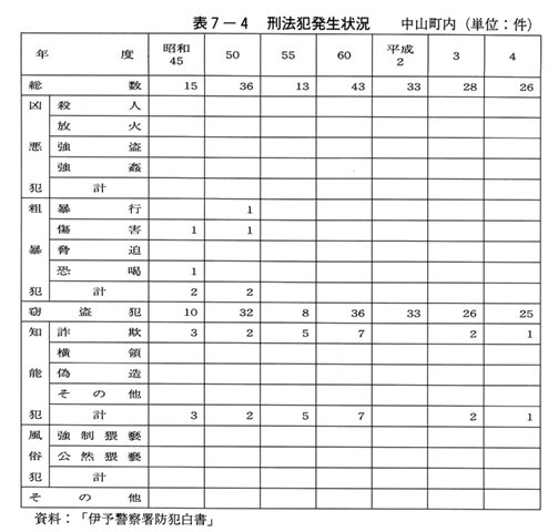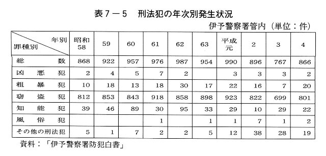 戦後、産業、経済、社会生活等の急激な発展に伴って犯罪が悪質・巧妙化して来ている。しかし、本町においては表7―4にあるとおり、凶悪犯や風俗犯が見られないのはせめてもの幸いである。