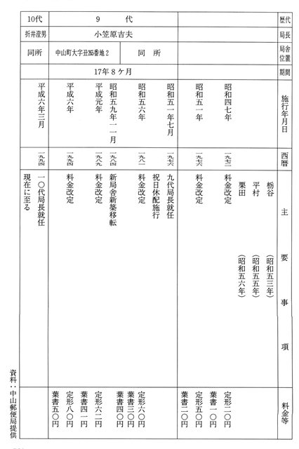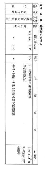 表4-6 中山郵便局のあゆみ① |