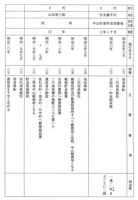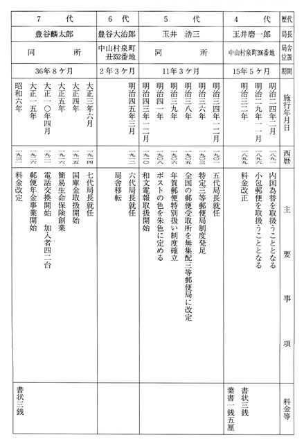 郵便事業と中山郵便局のあゆみをみると次の表4-6のとおりである。