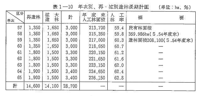 表1-10 年次別、再・拡別造林長期計画 |