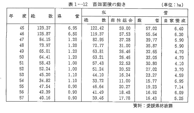 表1-12 苗畑面積の動き |