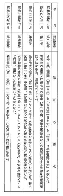 以後「内水面漁業調整規則」はときどき部分的な改正が行なわれ今日に至っているが主なものを下に略記する。