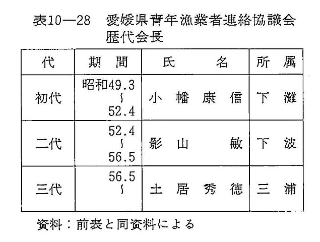 表10-28 愛媛県青年漁業者連絡協議会歴代会長 |