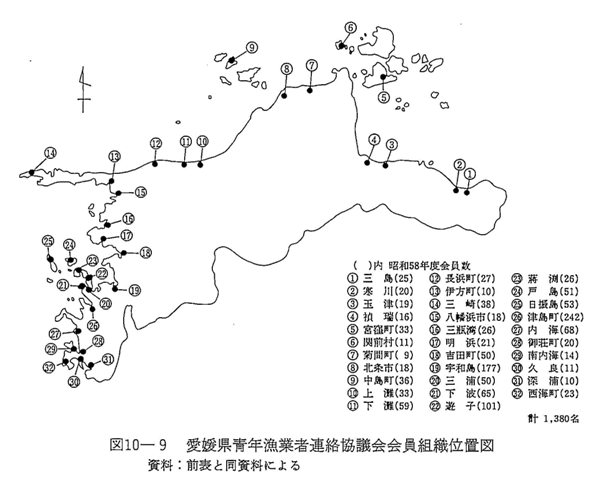 図10-9 愛媛県青年漁業者連絡協議会会員組織位置図 |