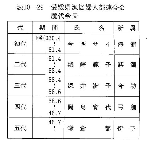 表10-29 愛媛県漁協婦人部連合会歴代会長 |