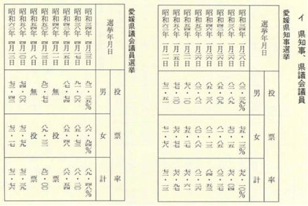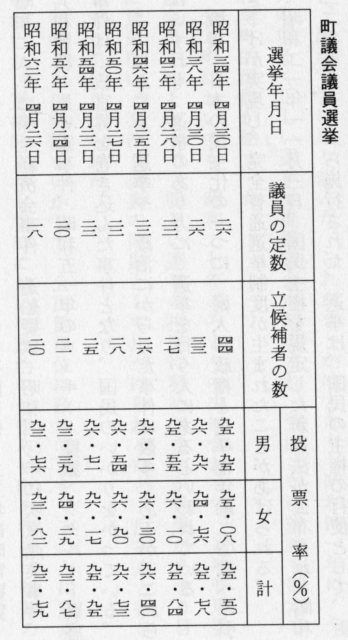 昭和二五年四月一五日、公職選挙法が交付され、政府に中央選挙管理会、地方公共団体に選挙管理委員会を設置しなければならないことになる。 地方公共団体の選挙管理委員会は公選法並びに地方自治法によって運用しなければならないが、委員は五人、任期は三年と定められている。 久万町の投票区は、一五投票区である。 開票区は久万町一区である。