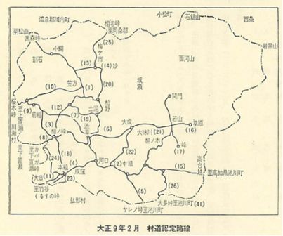 以上二六路線、もちろんいずれも、それぞれの集落の人々にとって生活路であり、村の行政・教育上からも重要なるものであった。しかしながら、村道に認定したとはいうものの、その路線の多くは、管理・維持とも、関係集落又はその路線に直接利害関係ある者がこれに当たっていた。